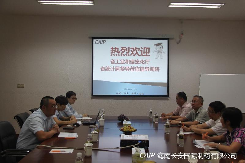 9月21日上午,海南省工業(yè)和信息化廳王靜廳長、海南省統(tǒng)計局局長包洪文、海南省工業(yè)和信息化廳巡視員廖強一行領導蒞臨海南長安制藥進行調(diào)研。公司總經(jīng)理汪立冬及公司領導層對他們的到來表示熱烈歡迎。