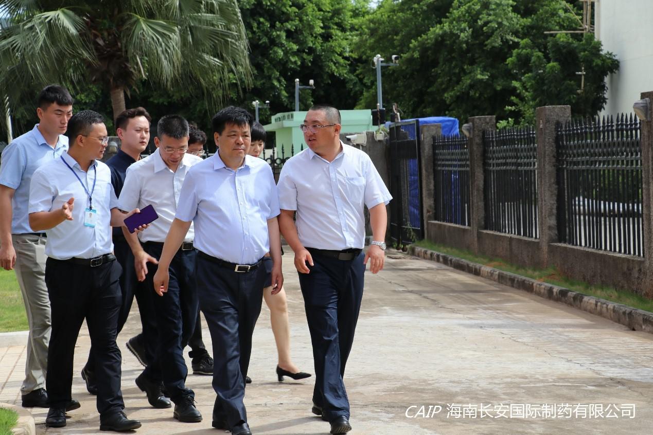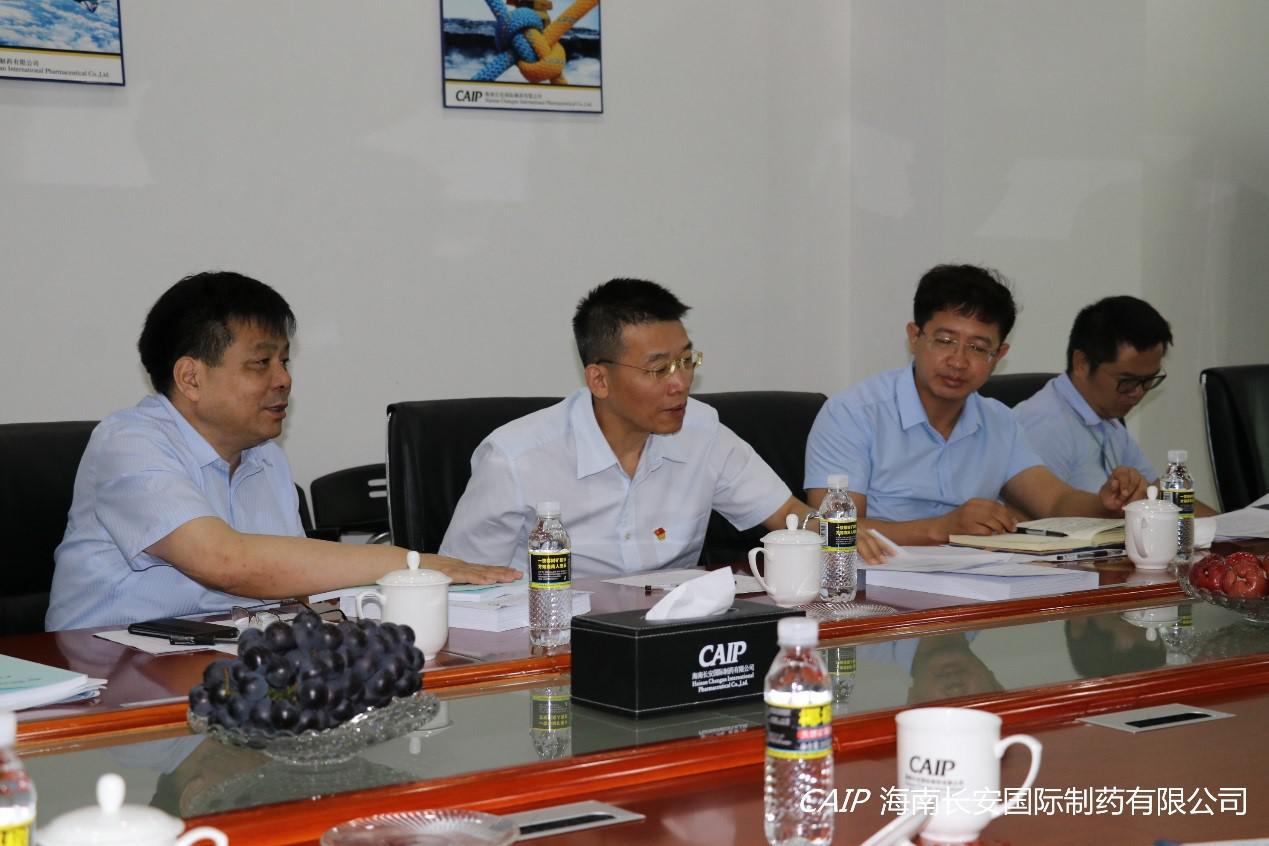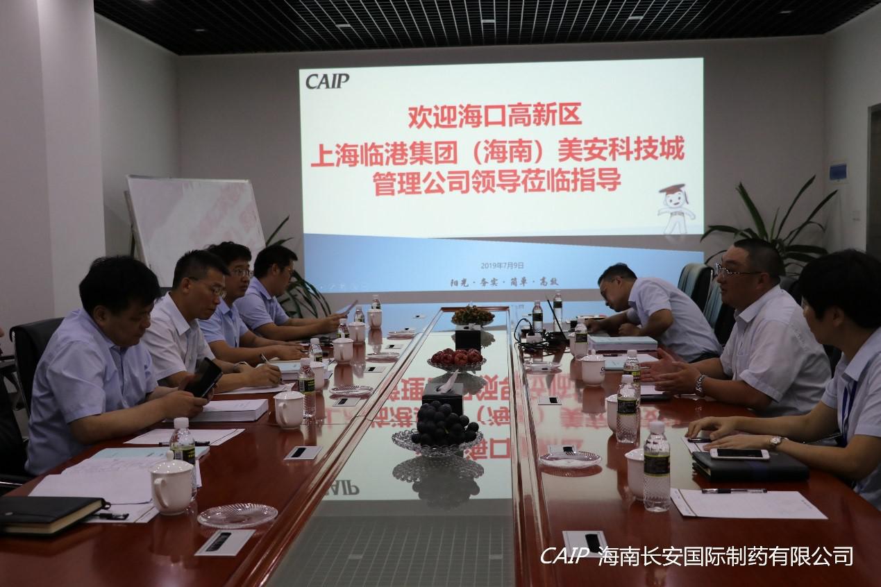 7月9日上午,海口高新區上海臨港集團(海南)美安科技城管理公司孫貴華董事長、海口高新區管委會韓寶富副主任、海口高新區管委會招商局徐吉局長等一行領導蒞臨海南長安國際制藥有限公司調研交流,公司汪立冬總經理出席交流。