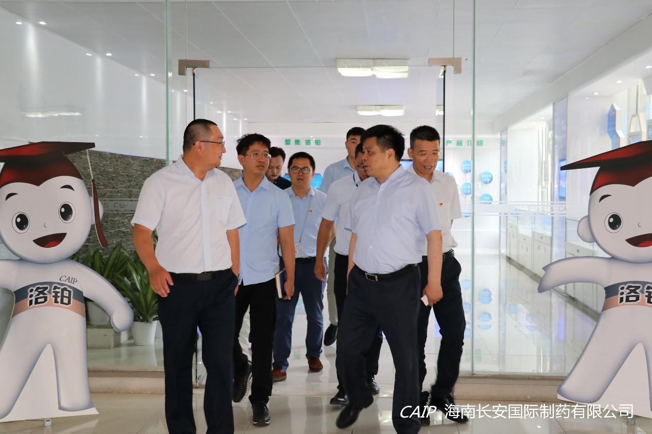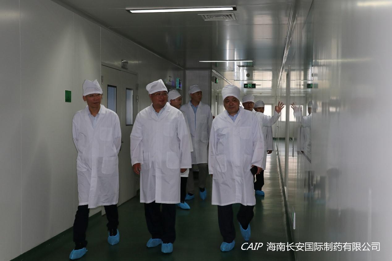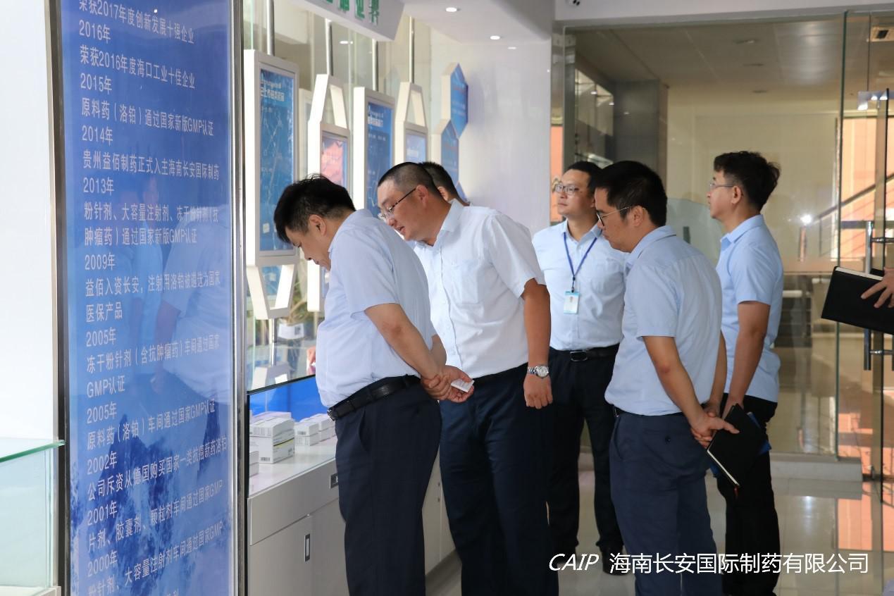 7月9日上午,海口高新區上海臨港集團(海南)美安科技城管理公司孫貴華董事長、海口高新區管委會韓寶富副主任、海口高新區管委會招商局徐吉局長等一行領導蒞臨海南長安國際制藥有限公司調研交流,公司汪立冬總經理出席交流。