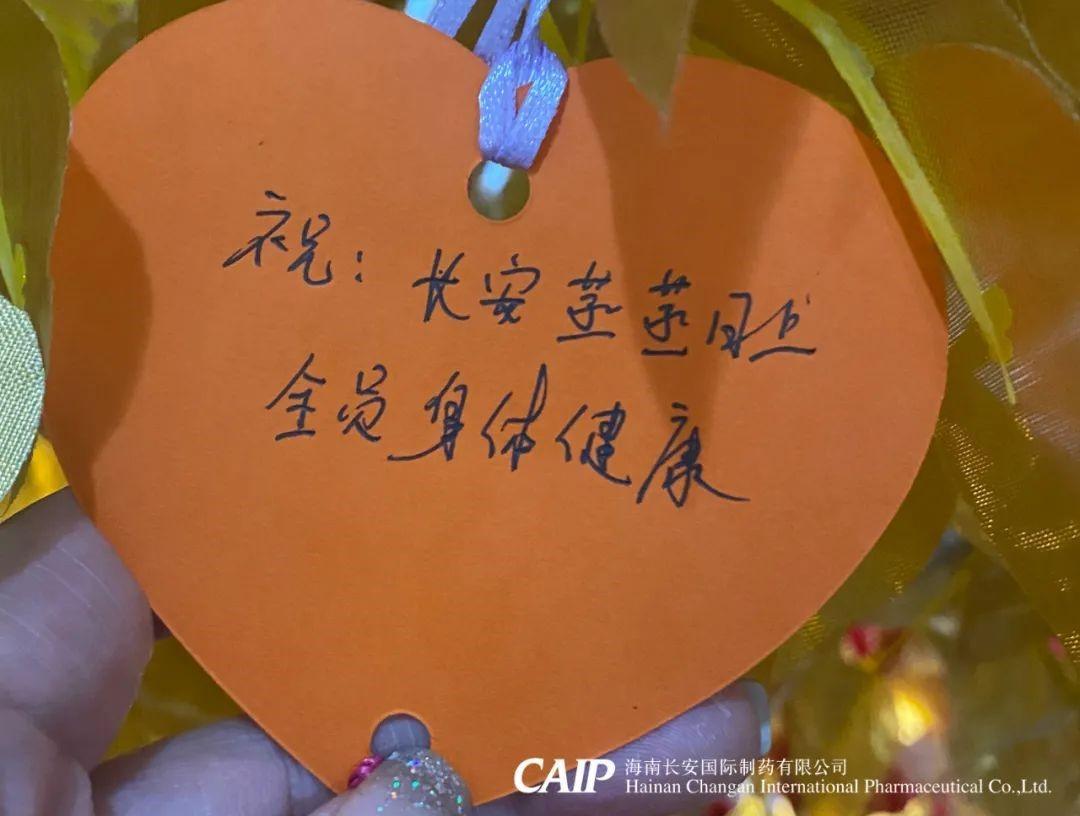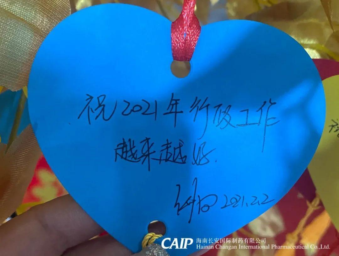 許下心愿的同事們臉上洋溢著快樂的微笑,一張張的心型的祝福卡片被掛在金色的許愿樹上,這些祝福中蘊含著長安人對辭別舊歲喜迎新年的美好愿景和內心最深處的愛意,同時也包括了同事們對長安制藥的真切祝福,對同事的美好祝愿,對個人未來的美好憧憬。