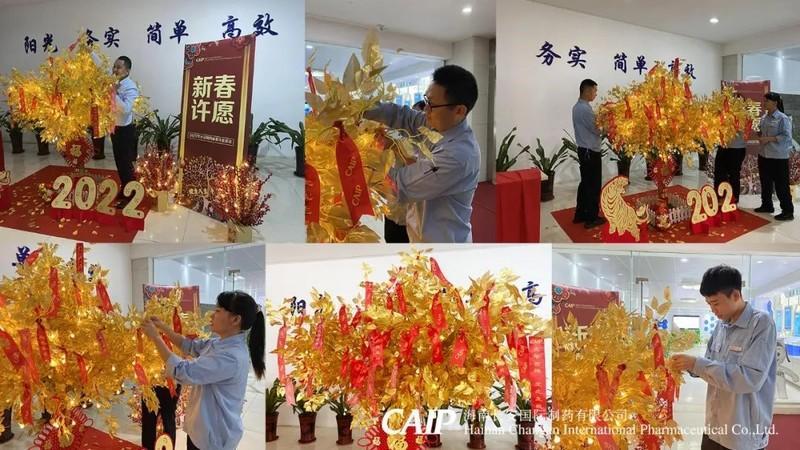 為了給長安人帶來濃濃年味,長安制藥推出了2022年新春許愿樹活動,精心裝扮的許愿樹出現(xiàn)在展廳門口,寓意著新年的祝福與勃勃生機。